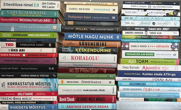 Kui ma aastal 2002 mälutreenimist alustasin, siis mul oli eesti keeles lugemiseks võtta ainult 2 raamatut. Enamus raamatuid tulid Ameerikast. Tänaseks on nii meie oma autorite kui ka häid tõlkeraamatuid kuhjaga. Võtan sealt virnast mõne vahest ära ja lisan teise jälle juurde. Pilt muudut kogu aeg. Siit leiad kindlasti endale midagi, mis kõnetab ja on kasulik.